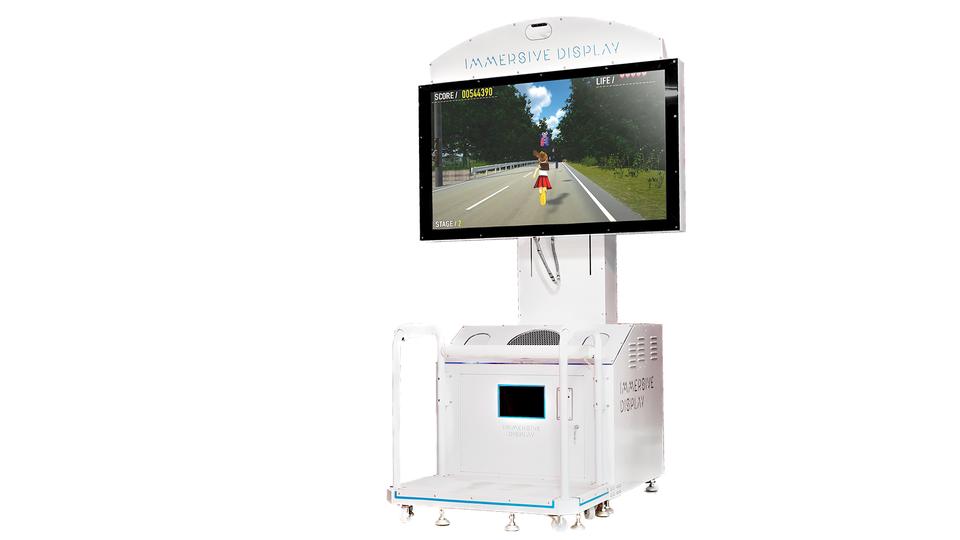 イマーシブ・ディスプレイはVRゴーグルを使わずにVR的な没入体験を実現するディスプレイ装置です。深度カメラを用いてプレイヤーの動きをトラッキングし、それに合わせてディスプレイ表示内容を変化させることで、2Dディスプレイで3D世界を体験することが可能となります。